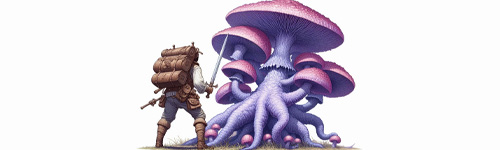 Durante uma incursão na floresta de Kumungu, encontrei um pequeno agrupamento de Fungos Violetas. Ao observá-los de longe, notei seu brilho peculiar à luz do dia, quase hipnotizante. Movido pela curiosidade, aproximei-me com cuidado e toquei um deles com um galho. A resposta foi instantânea: um líquido viscoso começou a corroer o galho em segundos, deixando apenas uma fumaça fétida. Decidi recuar antes que algo mais pudesse acontecer, mas não antes de perceber uma Mandrágora próxima, que reagiu à minha presença com um grito que fez meus ouvidos zumbirem por horas.
