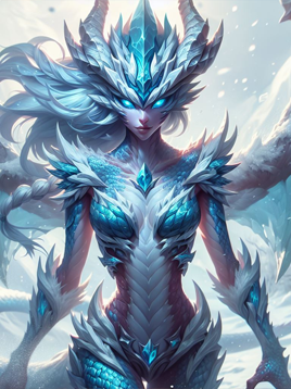 Nas regiões mais gélidas de Runeterra, emergem os Meio-Dragões Glaciais, seres que personificam a essência do inverno eterno. Originários de ambientes congelados, esses híbridos absorvem a magia do gelo ao seu redor, desenvolvendo uma resistência natural ao frio e a capacidade de manifestar o impiedoso poder invernal. Com tonalidades que variam do azul pálido ao lilás, os Meio-Dragões Glaciais são imunes a efeitos de frio extremo e não são afetados por terrenos de gelo ou neve. Seu sopro gélido carrega a potência das tempestades de gelo, podendo reduzir a mobilidade de seus adversários.